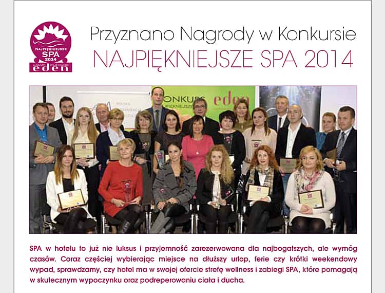 Poznaj najlepsze obiekty SPA w Polsce. Już za kilka dni, 9.01.2018 roku odbędzie się uroczysta Gala, na której poznamy laureatów konkursu Perfect SPA Awards 2017. A dzisiaj prezentujemy Finalistów, na których swoje głosy oddawała Kapituła Konkursu.